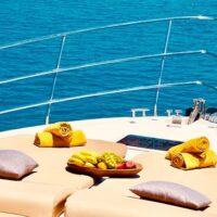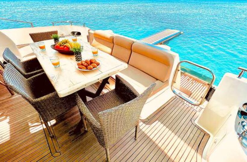 A full-style Italian Flybridge cruiser with all the features from the largest manufacturer in the world, is available for crewed charters.