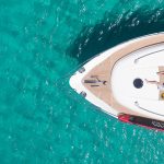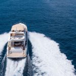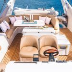 Princess 72 with two-tiered exterior decks cascade down to the sea level bathing platform brimming with the latest water sport equipment to make the most of the waters around Mykonos.